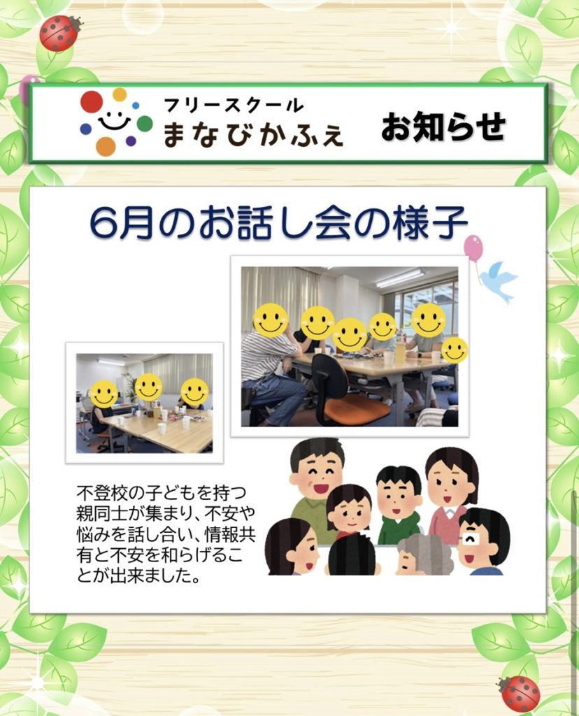 7月のお話会のご案内です。お気軽にご参加下さい。