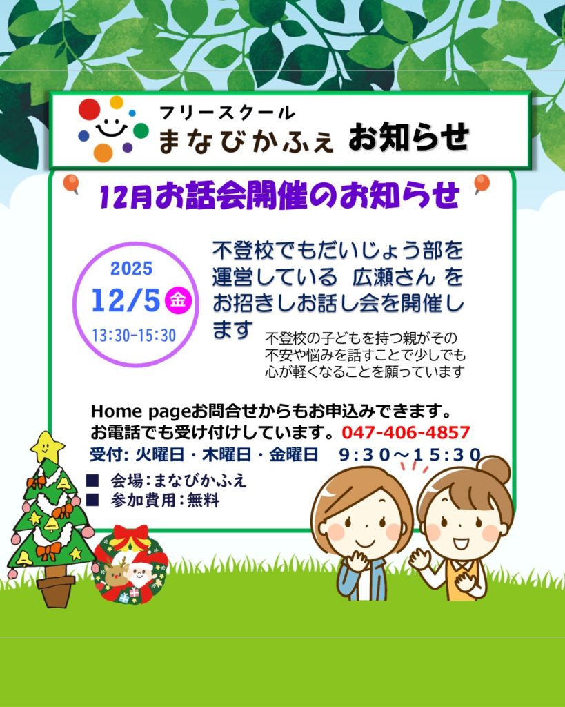 「不登校でもだいじょう部」主催の広瀬ひろみさんとのお話会を開催します