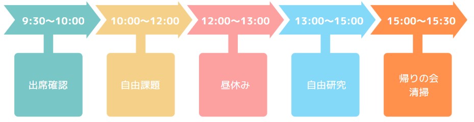 ※開校日は毎週火、木、金曜日となります。祝日はお休みです。